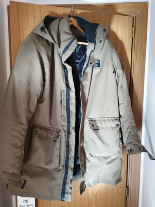 Abrigo tipo gabardina DXR, tejido exterior en Cordura,muy discreta,impermeable y abrigada, para uso diario , ideal scooter, forro invierno desmontable, protecciones codos y hombros,hueco espaldera,aperturas laterales, multitud de bolsillos, es bastante largo,tipo gabardina,el color es verde claro pistacho, talla L, está nuevo
