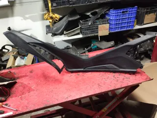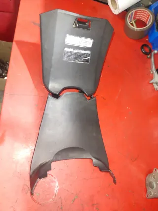 Carenado de scooter en color negro. Pieza de plástico resistente. Con tapa de guantera Se hacen envíos Más piezas en mi perfil - Diseño angular. - Abertura superior. - Compartimento lateral.