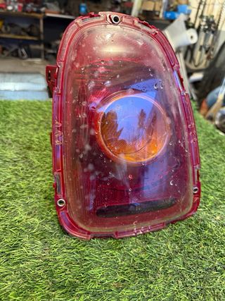 Piloto trasero izquierdo para Mini. Pieza de repuesto para tu vehículo. - Color rojo. - Diseño ovalado con portalámparas naranja. Info 56