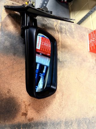 Retrovisor exterior izquierdo para Opel Combo. Pieza de plástico negro. - Diseño angular. - Brazo de sujeción metálico. Nuevo pero sucio!! Info 62