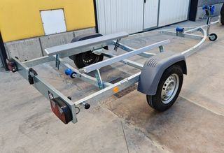 NUEVO: Remolque náutico en acero galvanizado para embarcaciones de hasta 5,5 metros, con eje galvanizado y sumergible de 750 kg. Cola de luces desmontable, homologado a 750 kg. Juego de rodillos delanteros y traseros, cabrestante textil. rueda jockey. Medidas de la zona de carga 550x150 cm. Consultar plazo de entrega. También en otras medidas. PRECIO 1840 € + IVA. Otros tipos de remolques disponibles.