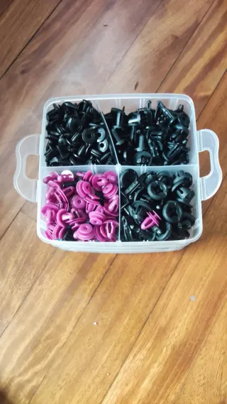 Kit completo de 680 grapas y clips universales para coche + herramientas de desmontaje incluidas. Ideal para reparar parachoques, paneles de puerta, molduras y tapizados sin dañar nada. Compatible con la mayoría de marcas. Perfecto para mecánicos y bricolaje. Nuevo a estrenar.