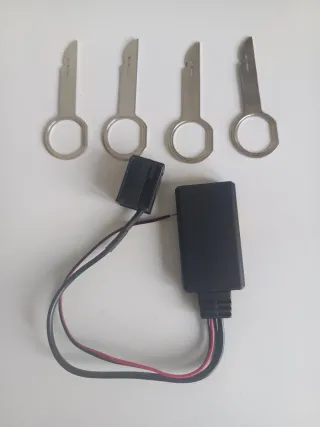 Adaptador Bluetooth para vehículos Ford. Este accesorio permite la conexión de dispositivos. - Conector negro. - Cables rojo y negro.
