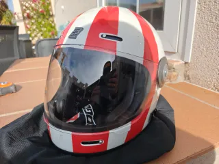 Casco integral Boggoto con homologación para moto. Diseño a rayas rojas y blancas. - Visera transparente. - Cierre de seguridad. - Interior cómodo. - Regalo visera negra. - Micro para intercomunicador - Soporte para intercomunicador Pocos usos, talla XL. Tiene sustituido un tornillo de la visera. Funciona correctamente. Sólo envíos por wallapop o en persona.