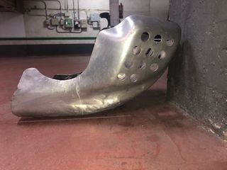 Protector de cárter de aluminio para Honda XRV750 RD04. - Material: Aluminio. - Diseño con múltiples perforaciones para ventilación y reducción de peso. - Se adapta al modelo XRV750 RD04.