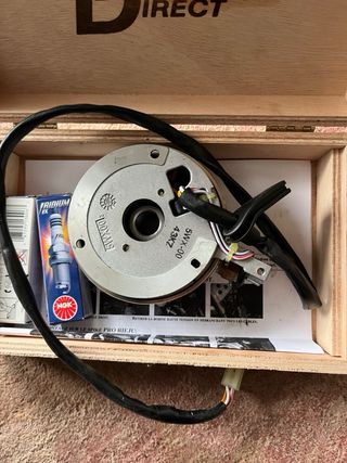 Kit de encendido para motores AM6 Lo doy con la bobina y dos cdi uno limitado y otro cdi deslimitado nuevo en la caja que no se llego a monta El encendido solo se uso 150km con la moto sacada de concesionario - encendido -bobina - 2 cdi -2 bujias una usada y otra nueva sin montar