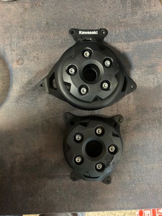 Protectores de motor para Kawasaki Z800 y Z750. Incluye dos protectores y tornillería completa, no han sufrido ninguna caída, son originales.