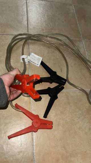 Juego de pinzas para coche con cables de conexión. Incluye pinzas rojas y negras. - Pinzas de color rojo. - Pinzas de color negro. - Cables de conexión incluidos.