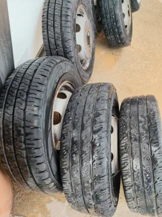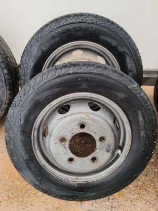 Juego de 6 ruedas para Nissan TRADE. Listas para montar. - Neumáticos en buen estado. - Llantas metálicas grises.