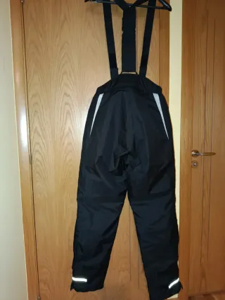 Pantalón de cordura para moto con tirantes ajustables. Diseñado para ofrecer comodidad y protección. - Color negro. - Detalles reflectantes en blanco. - Tirantes negros. - Logo de la marca en la parte frontal.