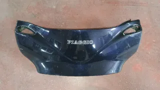 Carcasa frontal para scooter Hexagon 180 2T. Pieza de plástico lila tiene arañazos de averse caído y una pequeña grieta en el frente se ve en las fotos.