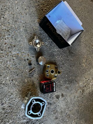 Kit de cilindro y culata Metrakit Pro Race 4. Cilindro de alimunio y culata dorada Piston Athena Esta nuevo a estreno