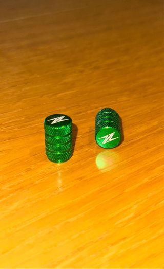 Juego de tapones para válvulas de rueda en color verde. Con el logo Z de Kawasaki. Fabricados en aluminio. Se venden por venta de la moto sin estos accesorios. Hay más accesorios del mismo estilo en mi perfil, por si puede ser de interés.