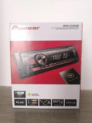Receptor multimedia digital Pioneer MVH-S120UB. Esta usado pero muy poco, añado cable para Citroën, Peugeot...., todo en perfecto estado para ser instalado. - Compatible con Android. - Conexión USB. - Conexión auxiliar. - Formato FLAC. - 1 Salida de preamplificador RCA. - Ecualizador de 5 bandas. - Control de subwoofer. - Potencia 50W x 4.
