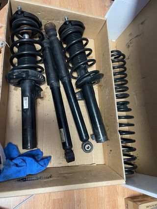 Kit de suspensión completa para Volkswagen Scirocco. Incluye amortiguadores y muelles. -Los muelles son Eibach -3cm homologados -perfecto estado (se quitaron por montar suspension neumatica) - Amortiguadores delanteros y traseros.