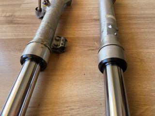 Conjunto de horquillas delanteras para Yamaha TMAX 500. Piezas de suspensión en buen estado. - Barras cromadas. - Botellas negras.