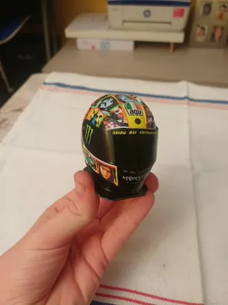 Casco miniatura de coleccionista AGV - Escala 1:5. Lo iva a usar para decoración en patinete eléctrico (ejemplo en la última foto) , se le hacen dos agujeros y se ponen dos bridas atadas a la parte d arriba d la suspensión delantera, pero al final no llegué a hacerlo asique esta nuevo como en las fotos