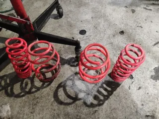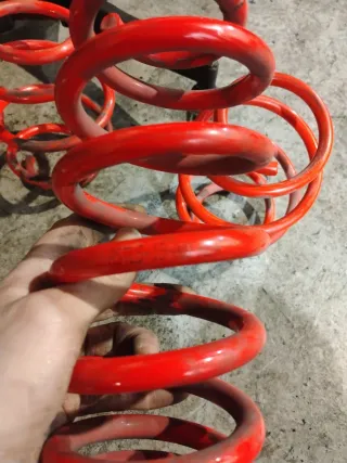 Muelles deportivos rojos para Hyundai i30N. Diseñados para mejorar la estética y el rendimiento. - Color rojo vibrante. - Diseño de muelle helicoidal.
