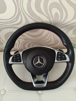 Volante deportivo para Mercedes-Benz con costuras rojas y vibracion SOLO volante 220, 400 con airbag, solo airbag 220, también lo tengo sin levas amg mercedes Benz W205 de 2017, con costuras negras y rojas se puede adaptar para algunos modelos anteriores (a partir de 2007), posteriores y del mismo año por 50 euros más te lo dejo montado, tambien lo tengo con la botonera de la casa y con táctiles como los del clase E Achatado amg,w204, clase C, clase a, clase B, clase e clase s, c63, CLS, cla, CLC, gla, glc, gle, w172, c207,w202, coupe cambio levas w247 w447 212 - Diseño deportivo y elegante. - Acabado en cuero negro. - Costuras deco