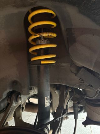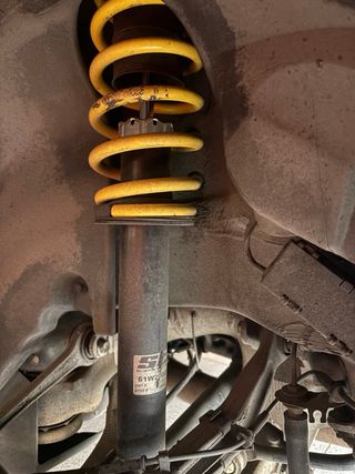 Suspensión delantera para BMW E60. Incluye amortiguador y muelle. -perfectas condiciones sin rezumes ni golpes para llegar e instalar, cualquier duda sin compromiso. baja el coche entorno a los 3-4cm -Con sus códigos para poder homologar. - Se pintaron muelles delanteros para pasar itv.