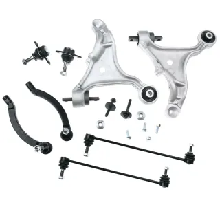 Kit de brazos de suspensión para Volvo S60, V70 y S80. Compatible con modelos de los años 2001 a 2005. - Incluye brazos de suspensión. - Incluye rótulas. - Incluye bieletas. - Incluye tornillería y tuercas. Nuevo a estrenar, juego de 8 piezas para dejar el coche como nuevo. Recambio.aftermarket genérico comprado en autodoc, sin marca