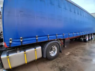 Semirremolque tauliner de la marca Leciñena. - Lona azul. - Suspensión neumatica - Ruedas 80% - Iluminación Led