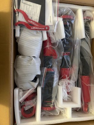 Kit de suspensión roscada de E46 , diseñado para mejorar el rendimiento y la estética de tu vehículo. Incluye herramientas para su ajuste. - Componentes principales en color rojo y negro. - Incluye dos llaves de ajuste. - Embalaje original con protecciones de espuma.NUNCA SE A MONTADO.⚠️⚠️⚠️NO SE HACE ENVIO⚠️⚠️⚠️