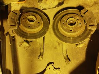 manguetas,con discos y pastillas con mucho uso aun y brazos delanteros con muelles. A mortiguadores para cambiar