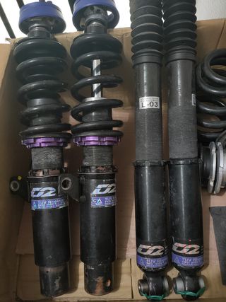 Suspensión roscada D2 Racing Sport para: VAG - (50mm) - (2wd) 1.8T/1.9TDI ** Fabricadas por BC Racing ** VW Golf IV GTI León 1M Audi A3 8L TT 8N Skoda Octavia 1U En buen estado Funcionando perfectamente Poco uso (unos 2000km) Incluye Copelas regulables TA Technix (-15mm) Regulables en 3 vías - 36 clicks de hidraulico 1-12 conducción cómoda 13-24 condición mixta(diario) 25-36 condición deportiva Altura Precarga independiente Entrega en Vitoria O envío 24H (+40€) Gente seria y realmente interesada NO MAREAR *Esta NO es una suspensión barata al alcance de cualquiera* ^Tienes baratas desde 250€ nuevas^ WhatsApp 636431978