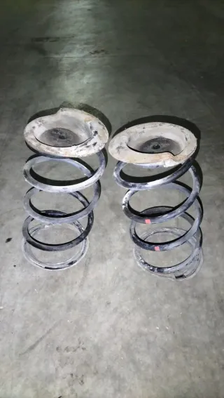 Se venden dos muelles de suspensión para Audi S3 8P. Están usados y muestran señales de desgaste por el uso, como algo de óxido. - Dos muelles. - Para Audi S3 8P. - Se aprecian marcas de uso.