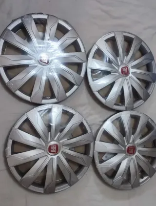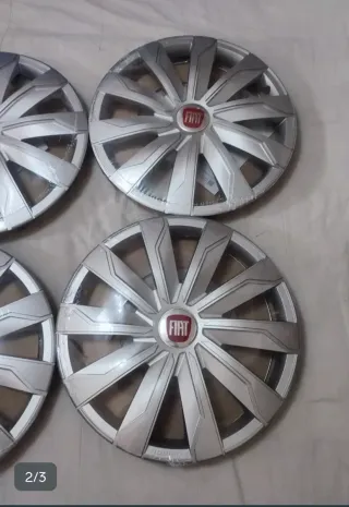 Set de 4 tapacubos nuevos para Fiat. - Compatibles con llantas de 14, 15 y 16 pulgadas. - 14 pulgadas valen 60€ por el juego completo de 4 tapacubos Fiat. - 15 pulgadas valen 65€ por el juego completo de 4 tapacubos Fiat. -16 pulgadas valen 70€ por el juego completo de 4 tapacubos Fiat. - Diseño deportivo plateado con logo Fiat. - Incluyen el emblema de Fiat en el centro - NO ES NEGOCIABLE !!!!!!!!!!!!! .