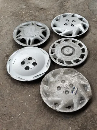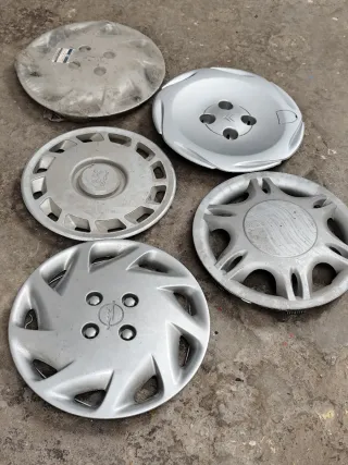Lote de 5 tapacubos de diferentes modelos y marcas. Se puede vender por separado. Sí compra todos los TAPACUBOS sé puede negociar y precio. PULGADAS de los TAPACUBOS: A 5 EUROS LA UNIDAD. CITROEN 14-17 (1 Tapacubo ). UNIVERSALES 14 ( 1 Tapacubo ). OPEL 15-18 ( 2 Tapacubos ). PEUGEOT 15-18 ( 1 Tapacubo ). - Tapacubos plateados. - Diseño con múltiples radios. - Tapacubos con logo central.