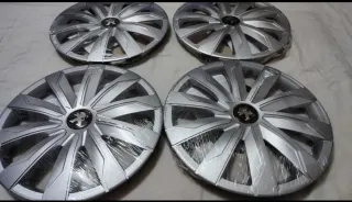 Set de cuatro tapacubos nuevos para Peugeot. - Compatibles con llantas de 14, 15 y 16 pulgadas. - Diseño plateado con logo de Peugeot en el centro. - Vienen protegidos con plástico. - 14 pulgadas valen 60€ por el juego completo de 4 tapacubos Peugeot. - 15 pulgadas valen 65€ por el juego completo de 4 tapacubos Peugeot. - 16 pulgadas valen 70€ por el juego completo de 4 tapacubos Peugeot. - NO ES NEGOCIABLE !!!!!!!!!!!!!!!!!!!!!