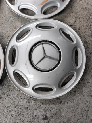 Juego de tapacubos originales Mercedes de 15 pulgadas. - Diseño deportivo y elegante. - Fabricados en material resistente. - Logo de Mercedes-Benz integrado.