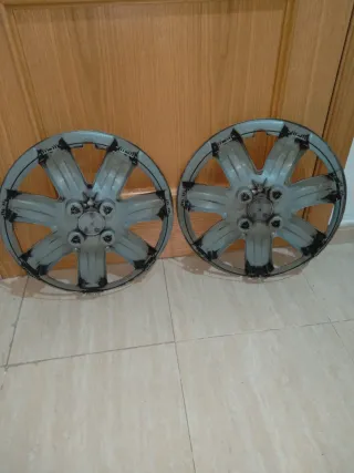 Se venden 2 tapacubos Dacia de 16 pulgadas originales. En buen estado. 1 tiene unos pequeños roces como se muestra en foto. - Diseño de 5 radios. - Color gris plateado.