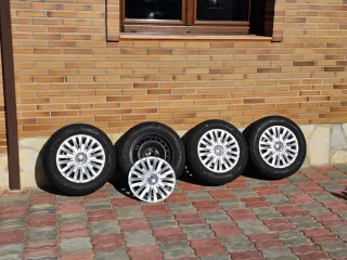 Juego de 4 llantas + Neumáticos + tapacubos originales R16 para Volkswagen Transporter. NO VENDO LOS NEUMÁTICOS POR SEPARADO 2 Neumáticos de invierno Goodyear 205/65 R16 107T al 95% (Solamente 800km) 2 Neumáticos all seasons General misma medida al 80% *Solo recoger Los vendo por cambio a R17 Preferiblemente vendo los 4 juntos.