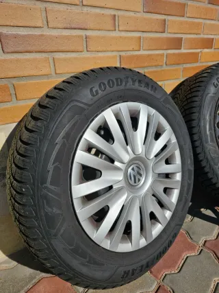 Se vende juego de neumáticos de invierno con llantas originales marca goodyear ultragrip 9+ con muy poco uso. Las llantas y sus tapacubos son originales de volkswagen Las medidas de los neumaticos son: 195/65/r15 91T