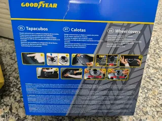 Juego de tapacubos Goodyear de 15 pulgadas, nuevos a estrenar. - Diseño universal que se adapta a la mayoría de las ruedas. - Superficie exterior con barniz brillo para fácil mantenimiento. - Aberturas para refrigeración de las llantas. - Incluye aberturas para las válvulas. - Montaje sencillo sin herramientas.