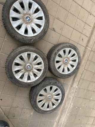 Neumático de invierno en buen estado. -llanta mas neumáticos mas tapacubos de BMW. - Medida: 195/55R16. - Marca: syron - Fabricado en Alemania. -Al 70 -80 porciento de vida -la unidad 30€. -el PAC completo las cuatro 100€.