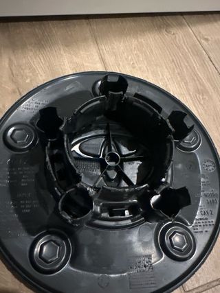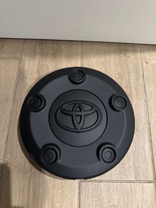 Tapacubos central para llantas Toyota. Diseño en color negro mate. - Logo Toyota en relieve. - Acabado negro mate. Exterior esta perfecto interior tiene algunas pestañas rotas por lo que puede que toque reparar un poco aunque se aguanta