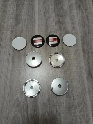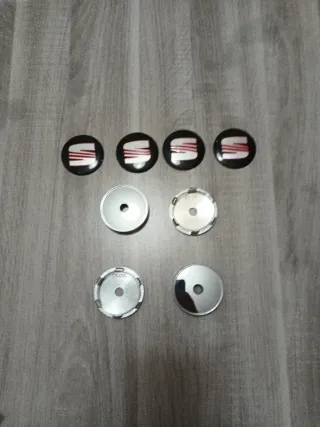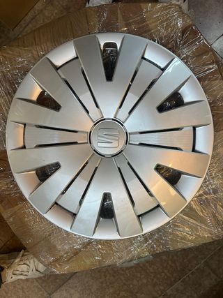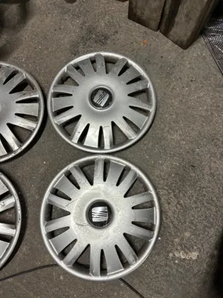 Juego de tapacubos para Seat Ibiza. Diseño plateado con el logo de Seat en el centro. - Tapacubos de 15 pulgadas. - Fabricados en plástico ABS resistente. - Set de 4 unidades. - Usadas solo para sacar del sitio donde compre el coche, lo cambie a los 30km.