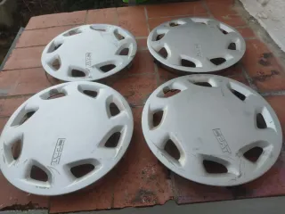 4 Tapacubos plateado para Nissan N14. Diseño de 10 radios con logo de Nissan en el centro. - Material: Plástico. - Color: Plateado. - Compatibilidad: Nissan N14. precio negociable