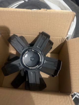 Tapacubos de coche. Son 7 en total. Están algo desgastados por el uso, pero en general se encuentran en buen estado. - Se venden 7 por separado o juntos - Material: plástico. - Color: gris plata. y 3 de color negro