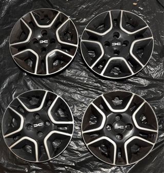 Juego de tapacubos para llantas de 14 pulgadas de Dacia. - Diseño deportivo en negro y plateado. - Logo de Dacia en el centro.