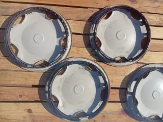 Juego de cuatro tapacubos usados para Citroën Saxo de 13 pulgadas. 2 de ellos presentan más roces, pero en un estado bueno en general Se venden por no darle un uso , también tengo llanta chapa Los 4 35€ Los puedo enviar
