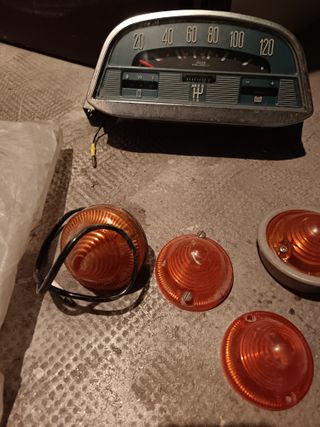 Lote de piezas para Citroen 2CV en buen estado,se vende lote entero preferiblemente. - 3 Tapacubos de metal - velocímetro,cerraduras luces.