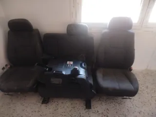 Conjunto de asientos de coche en color negro. - Tapicería de tela. - Reposacabezas integrado. - Base con sistema de anclaje. Muy bien estado, usados muy poco, solamente un pequeño descosido en la zona del conductor, pero muy poca cosa