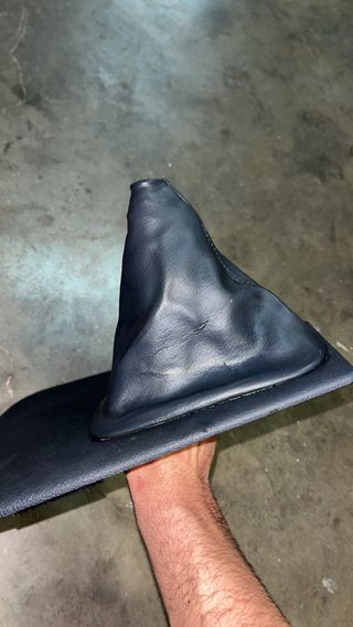 Tapicería de freno de mano para BMW E34. - Material: Cuero negro. - Diseño texturizado.