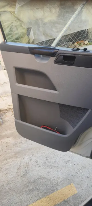 Tapicería interior para Volkswagen T5. - Color gris. - Incluye compartimentos de almacenamiento. - Revestimiento de puerta.