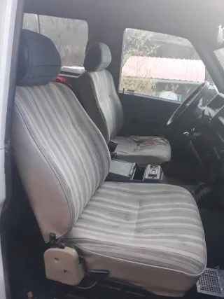 Asientos delanteros para Nissan Patrol. - Tapicería de tela a rayas beige y marrones. - Reposacabezas integrados. - Ajuste manual. Tal y como se ve en la foto no inclulle la base se chapa donde can atornillados